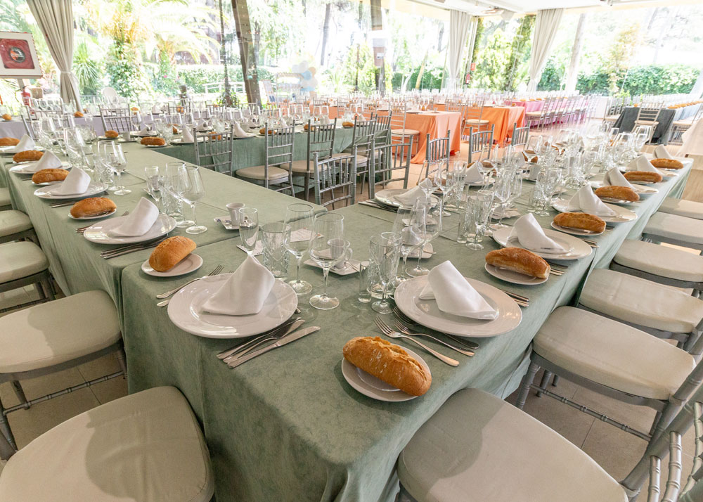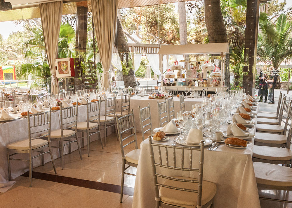 09.- Disponemos de zonas privadas de 60 a 80 comensales, todo el día (hasta las 21:30 h.) que incluyen barra libre y recena dulce y salada por 3.000 euros (sujeto a primeras reservas).