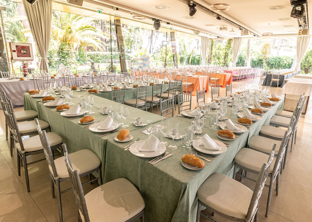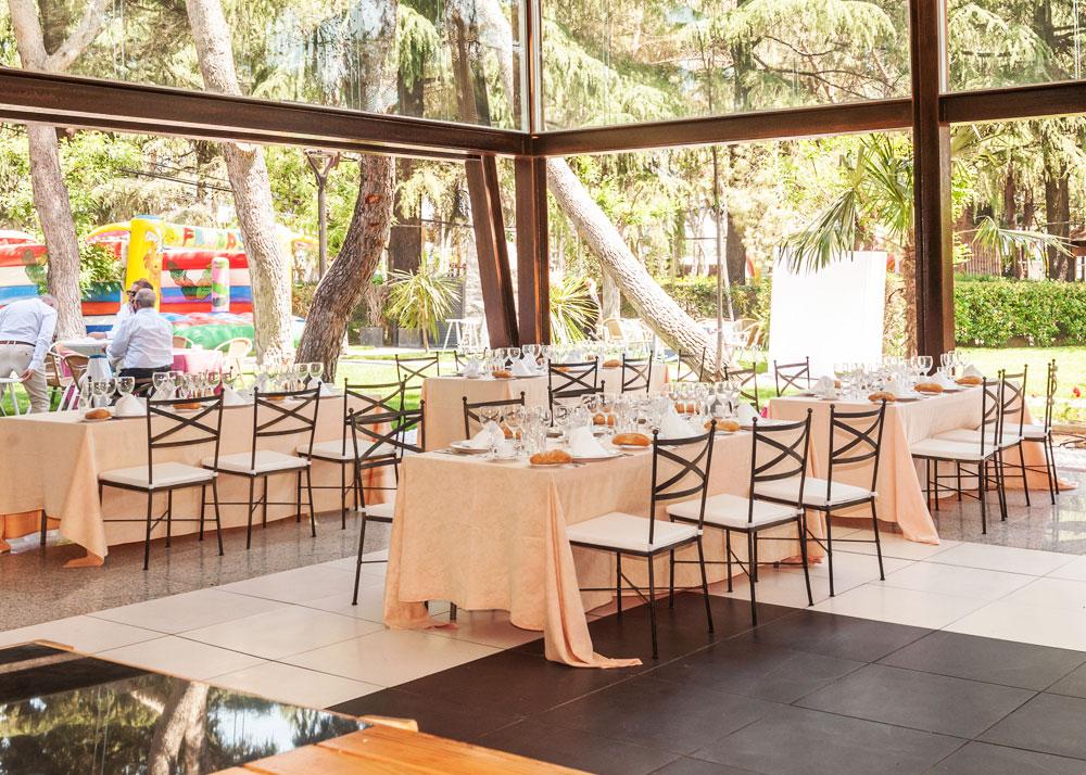 Con buen tiempo, dentro de nuestro recinto ajardinado, servicio de orquesta y/o discoteca incluido (sin coste alguno) a partir del mes de Mayo.